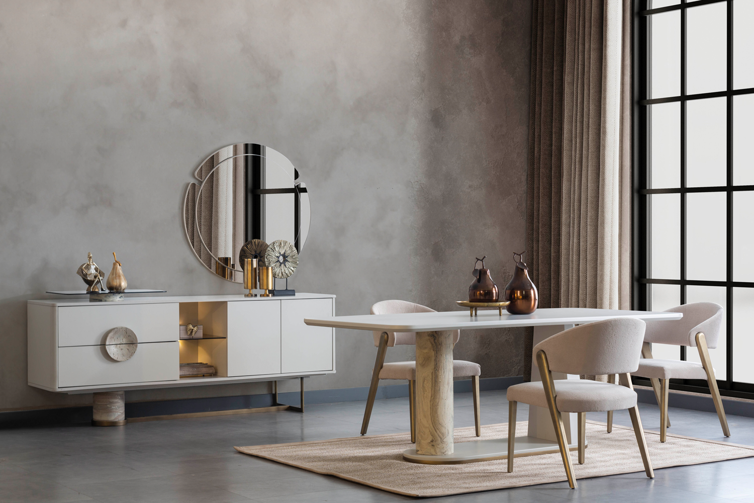 Turcana koleksiyonundaki her bir yemek odası takımı, estetik ve fonksiyonelliği kusursuz bir dengeyle sunar: